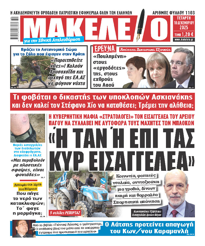 Αποκτήστε τώρα την έντυπη εφημερίδα ΜΑΚΕΛΕΙΟ για την Εθνική Απελευθέρωση σε PDF